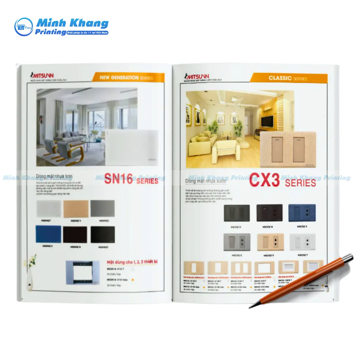 Xưởng in ấn Minh Khang chuyên cung cấp dịch vụ thiết kế và in catalogue thiết bị điện cho các doanh nghiệp, cửa hàng, nhà thầu và kỹ sư điện trên toàn quốc. Với thế mạnh là xưởng in trực tiếp, Minh Khang có khả năng tối ưu chi phí, đảm bảo chất lượng in sắc nét và thời gian hoàn thiện nhanh chóng. Đặc biệt, chúng tôi nhận in catalogue với số lượng nhỏ, phù hợp với các đơn vị vừa và nhỏ hoặc các dự án cần in thử nghiệm trước khi triển khai đại trà.