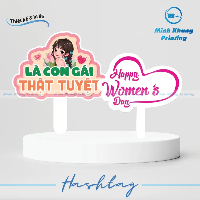 Tóm lại, một mẫu hashtag cầm tay chỉn chu sẽ là mảnh ghép hoàn hảo giúp sự kiện 8/3 của bạn thêm phần trọn vẹn và ý nghĩa. Hãy để In Minh Khang đồng hành cùng bạn kiến tạo nên những khoảnh khắc check-in rực rỡ và chuyên nghiệp nhất. Liên hệ ngay với chúng tôi qua hotline 0973.795.125 để nhận tư vấn và báo giá chi tiết cho các mẫu hashtag cầm tay 8/3 dẫn đầu xu hướng hiện nay!