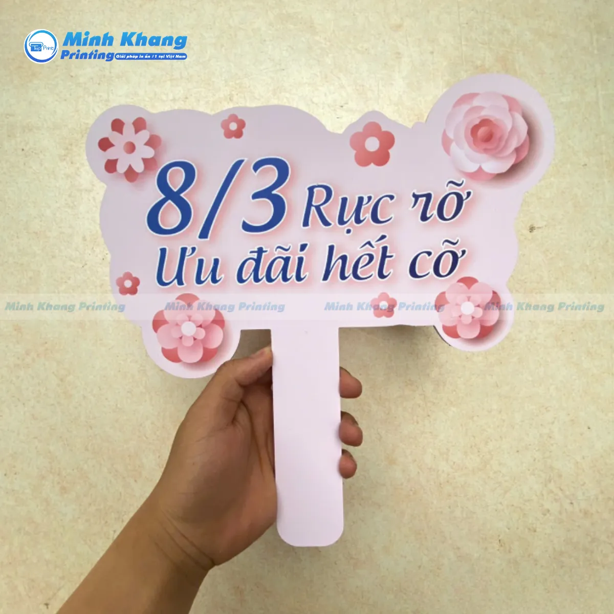 Hiểu được nhu cầu đó, In Minh Khang mang đến dịch vụ thiết kế và in hashtag cầm tay 8/3 trọn gói, cam kết cung cấp giải pháp toàn diện giúp sự kiện của bạn trở nên nổi bật và chuyên nghiệp hơn bao giờ hết.