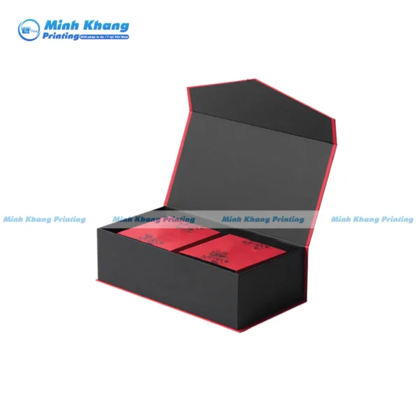 Mẫu Hộp Giấy Nam Châm Cán Màng Đỏ Đen Đựng Trà