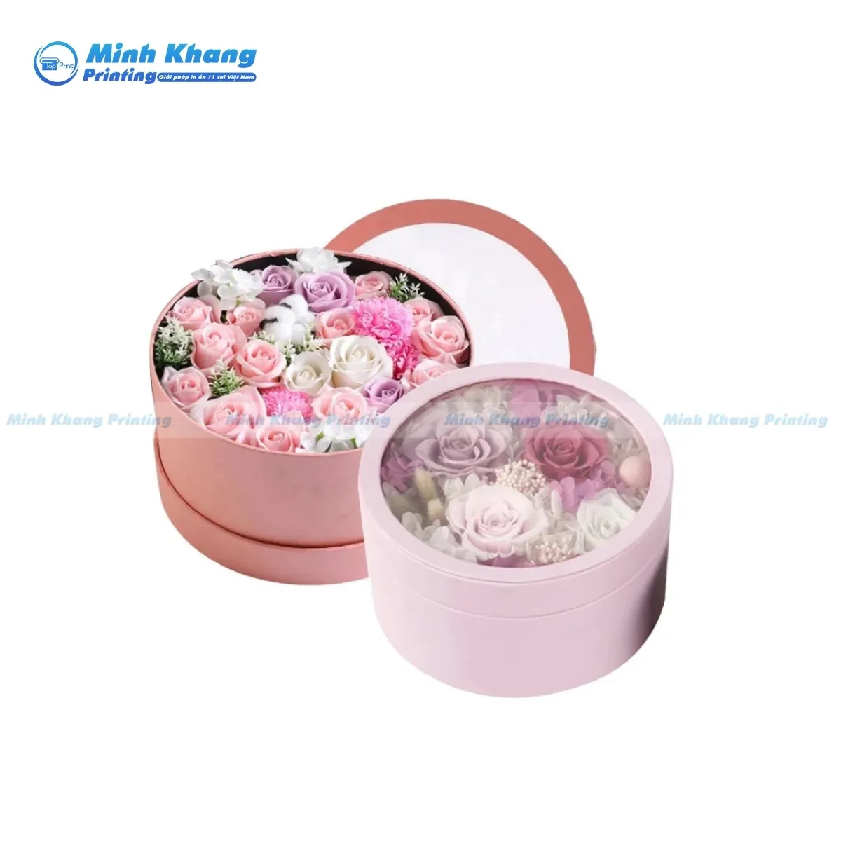 Mẫu hộp giấy tròn đựng quà, hoa có cửa sổ