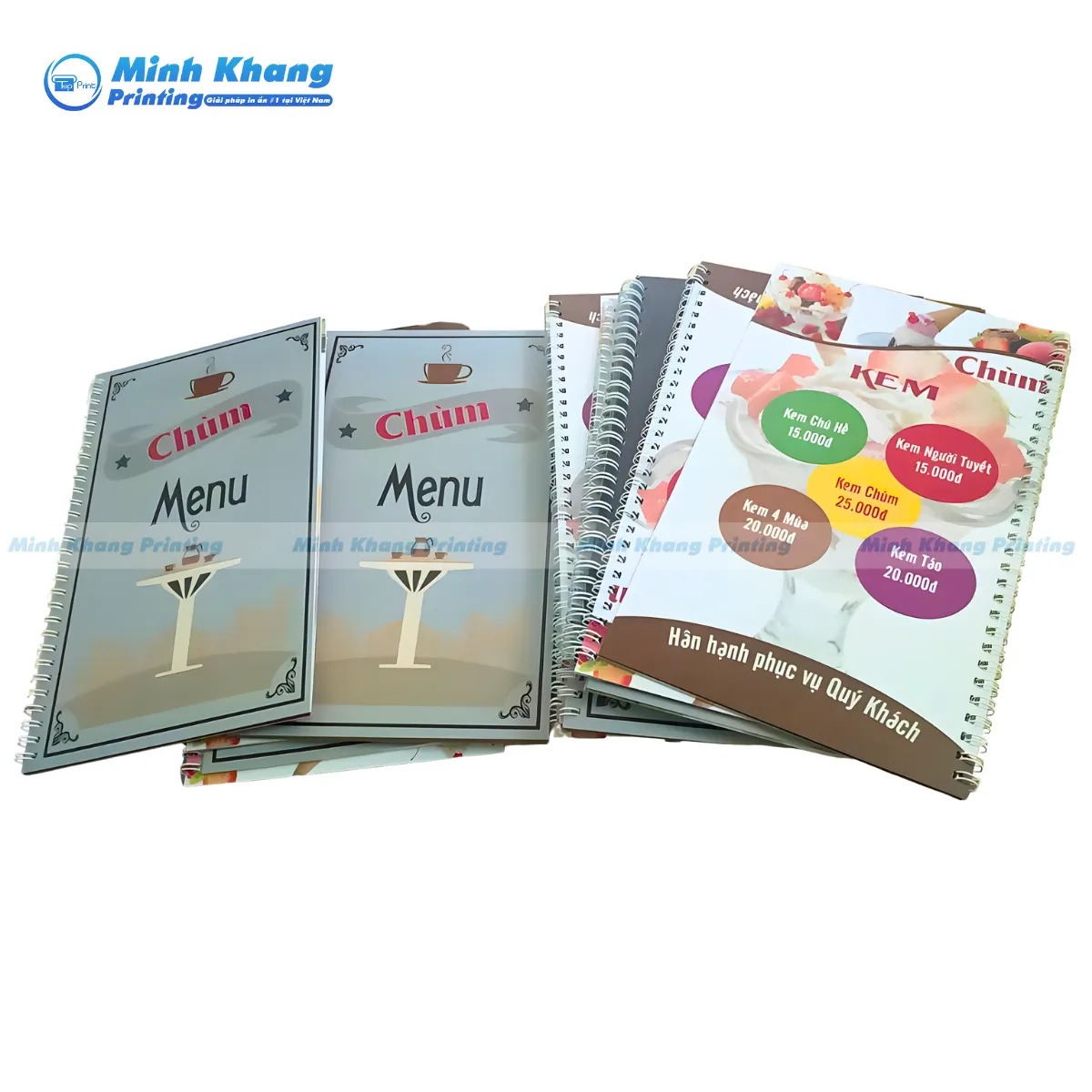 Mẫu menu nhựa đẹp cho nhà hàng đóng gáy bằng lò xo