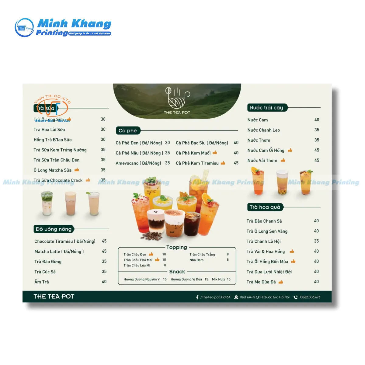 Địa chỉ in thực đơn trà sữa, menu trà sữa đẹp giá rẻ nhất tại tphcm