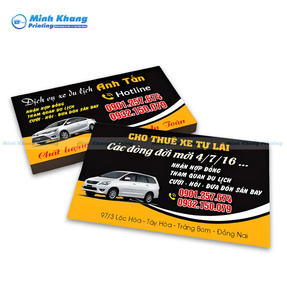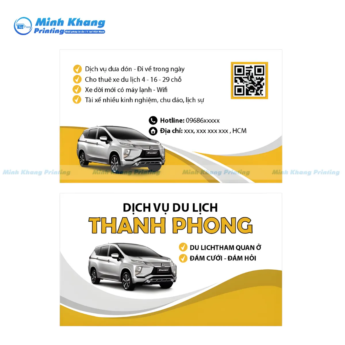 In Minh Khang là đơn vị chuyên cung cấp dịch vụ thiết kế & in name card taxi gia đình, làm card visit xe hợp đồng, và in ấn danh thiếp bác tài chất lượng cao tại TPHCM và các tỉnh thành lân cận. Chúng tôi cam kết mang đến những sản phẩm vượt trội, giúp bạn tạo ấn tượng sâu sắc với khách hàng ngay từ lần gặp đầu tiên.