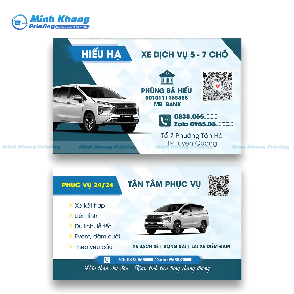 Mẫu card visit xe 4 chỗ 7 chỗ đẹp Hiếu Hạ kích thước 90x54mm