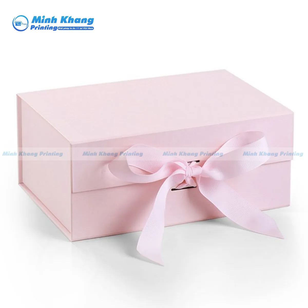 Mẫu hộp giấy trơn làm quà tặng có thắt nơ xinh xắn