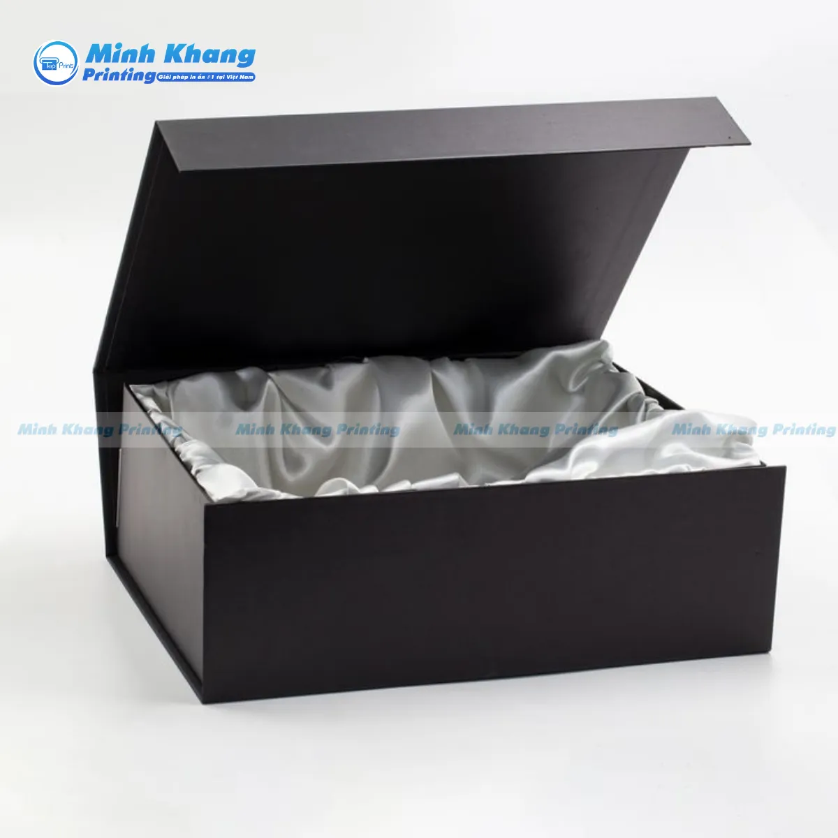 Mẫu hộp giấy trơn đựng quà nam châm có lớp lót nhung trắng