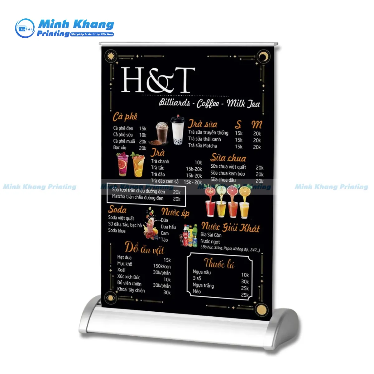 Mẫu menu để bàn menu standee quán bida vừa trang trí vừa thu hút khách ngay khi bước vào quán