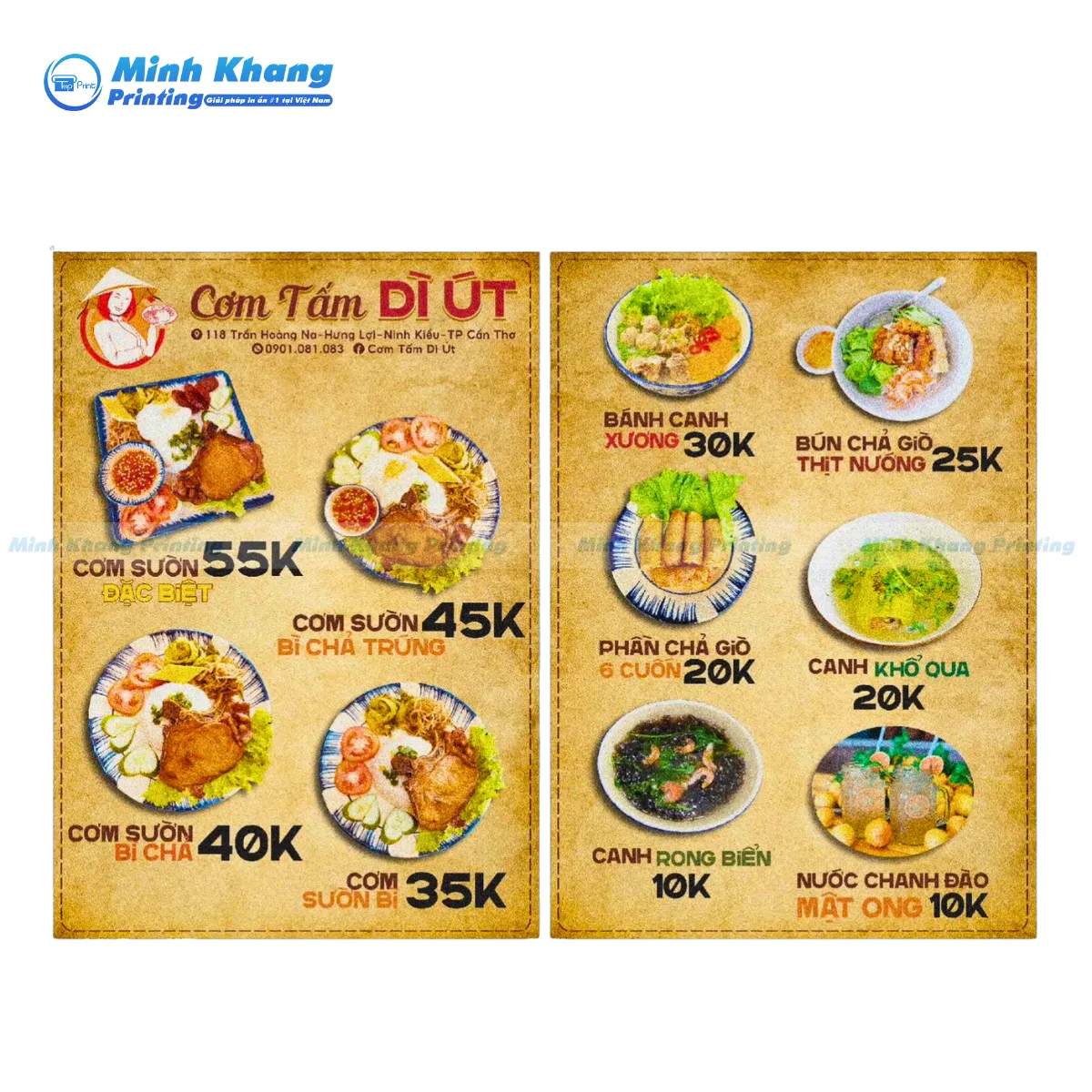Nếu bạn đang tìm một đơn vị in menu quán cơm tấm giá rẻ, chất lượng tại TP.HCM – In Minh Khang là lựa chọn đáng tin cậy. Với hơn 10 năm kinh nghiệm trong lĩnh vực in ấn, chúng tôi cung cấp dịch vụ thiết kế – in menu – gia công trọn gói, đảm bảo màu sắc đẹp, chất liệu bền, giá thành cạnh tranh.