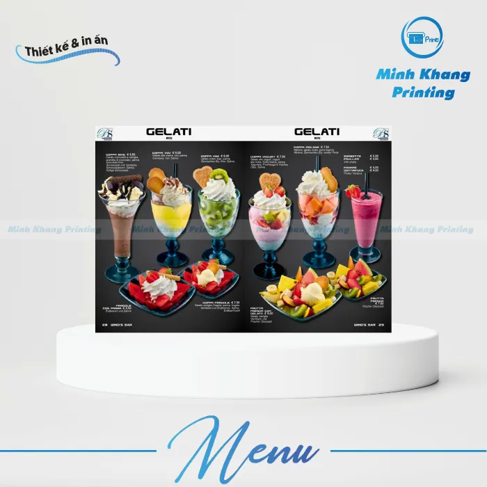 Dưới đây là bộ sưu tập mẫu menu quán kem nổi bật từ In Minh Khang, được thiết kế để phù hợp với nhiều phong cách quán kem: