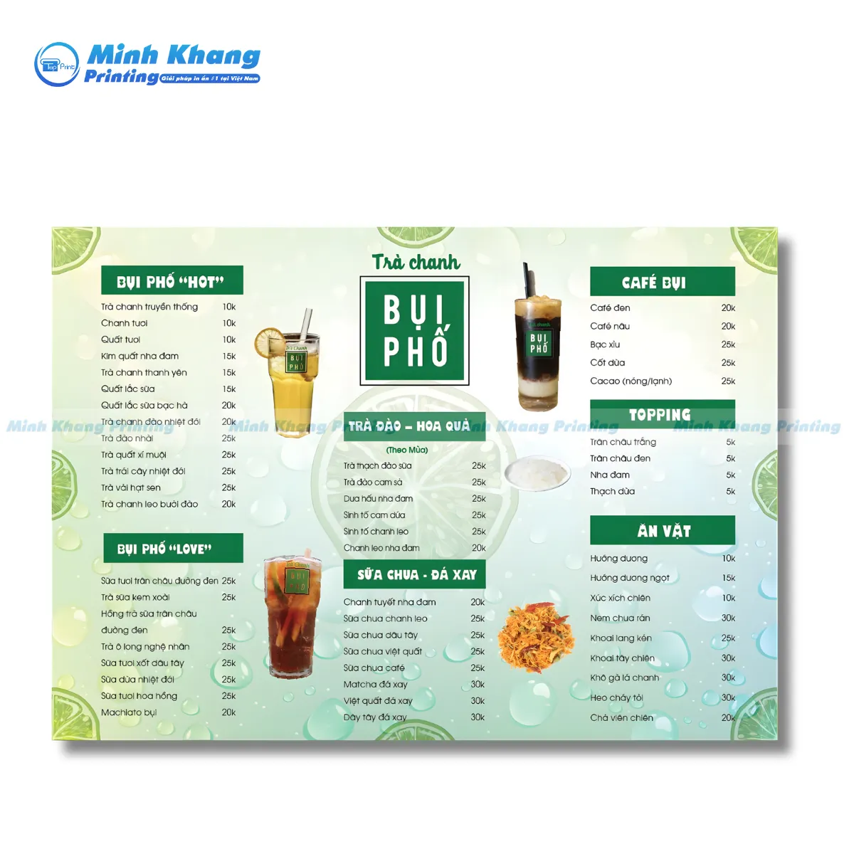 Nếu bạn đang tìm kiếm đối tác in ấn đáng tin cậy để tạo ra menu quán trà đá hoàn hảo, In Minh Khang là địa chỉ được nhiều chủ quán vỉa hè và chuỗi cửa hàng tin tưởng. Chúng tôi có kinh nghiệm sâu rộng trong ngành in ấn F&B, hiểu rõ yêu cầu về độ bền của menu trà đá vỉa hè.