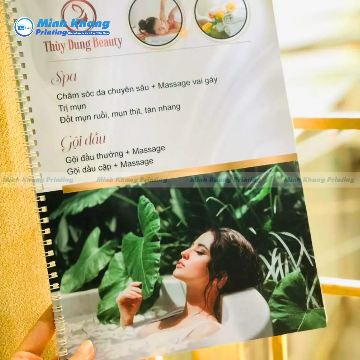 In Minh Khang là đơn vị in ấn hàng đầu tại TP.HCM, với hơn 10 năm kinh nghiệm phục vụ các spa, nhà hàng, và quán F&B. Chúng tôi chuyên thiết kế và in menu đẹp, chất lượng cao, giúp các chủ spa lớn & nhỏ lẻ nâng tầm thương hiệu.