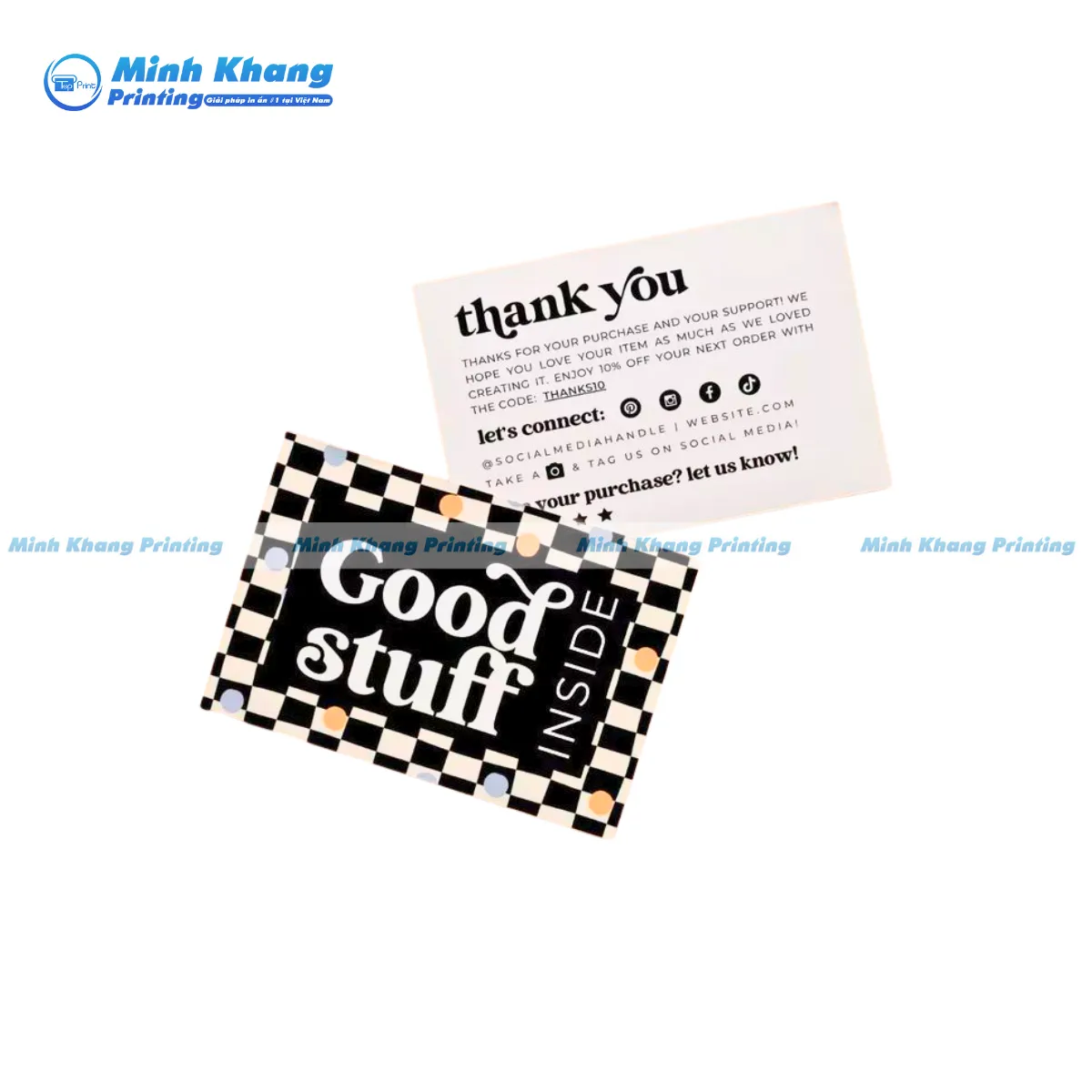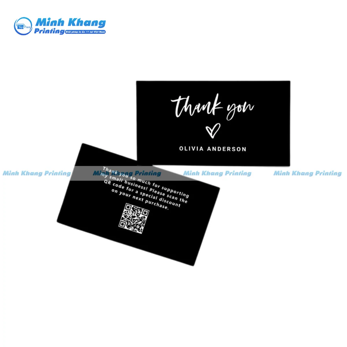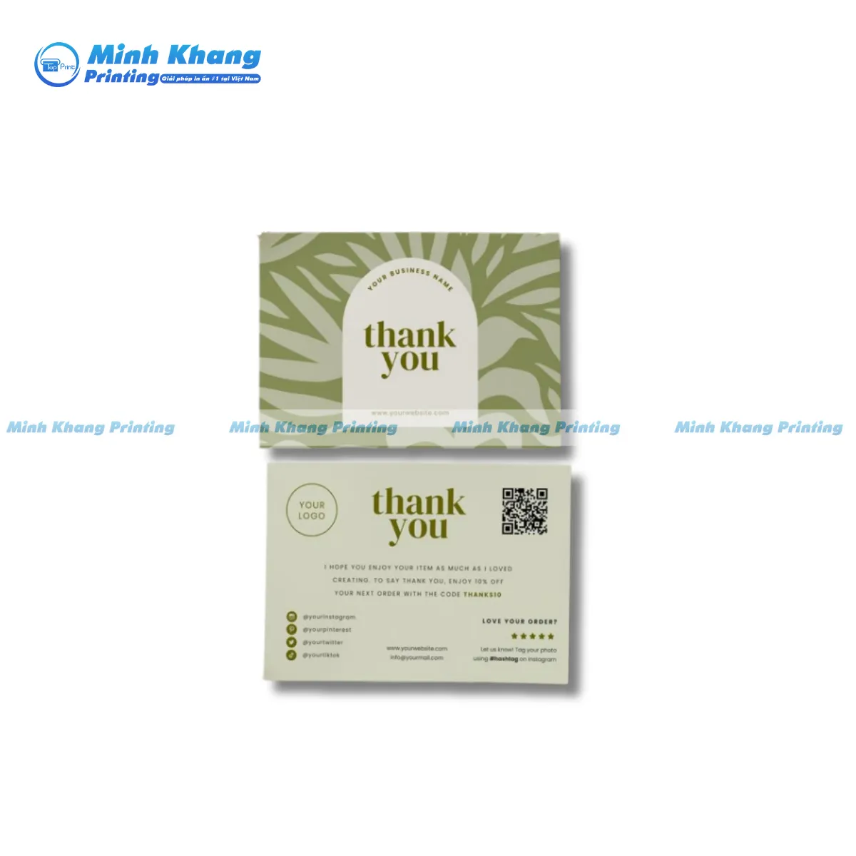 In Minh Khang chính là lựa chọn lý tưởng dành cho bạn. Với hơn 10 năm kinh nghiệm trong ngành in ấn, Minh Khang đã đồng hành cùng hàng ngàn doanh nghiệp lớn nhỏ trên toàn quốc trong việc tạo nên những sản phẩm in name card cảm ơn giá rẻ chất lượng cao, truyền cảm xúc trọn vẹn. In Minh Khang tự tin đáp ứng mọi yêu cầu – từ đơn hàng số lượng nhỏ đến các dự án cao cấp. Do chúng tôi sở hữu: