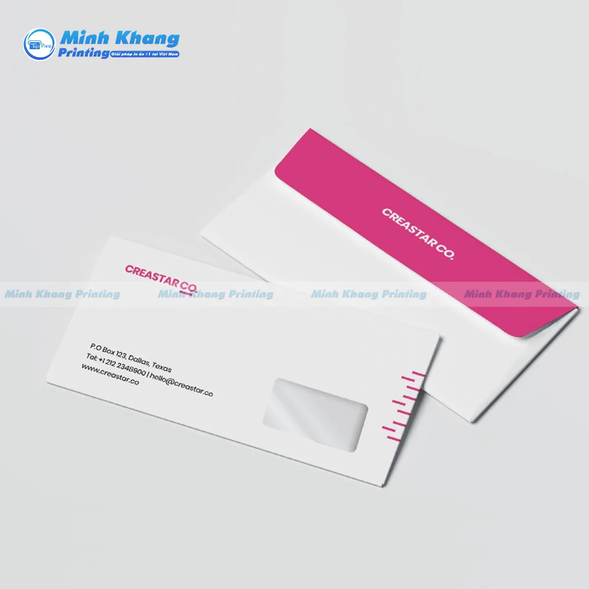 Tại In Minh Khang, chúng tôi sản xuất dựa trên các thông số Kích thước phong bì có cửa sổ chuẩn nhất để đảm bảo tương thích với mọi loại máy đóng thư tự động: