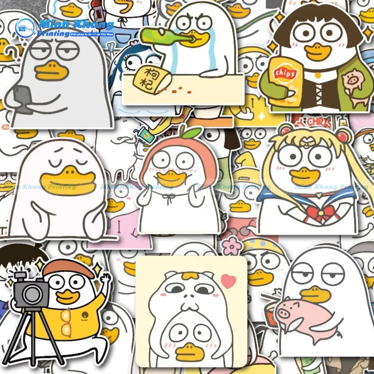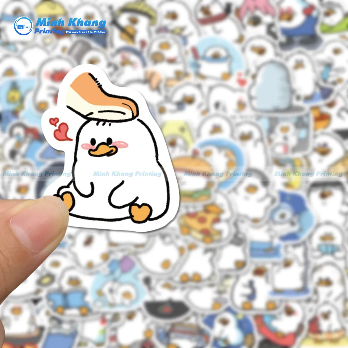 Sticker con vịt đẹp cần in đúng cách. Chọn đúng chất liệu, kích thước, công nghệ in để có sticker ưng ý.