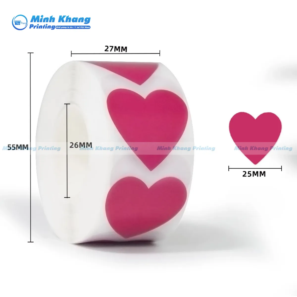 Mẫu sticker trái tim cuộn kích thước mỗi nhãn dán 2mm