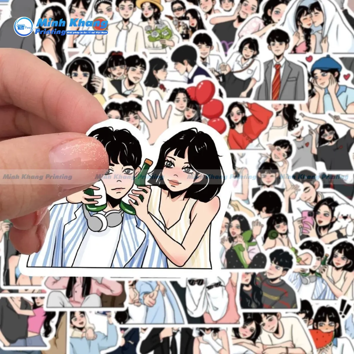Mẫu sticker giấy couple in bằng chất liệu decal chống nước