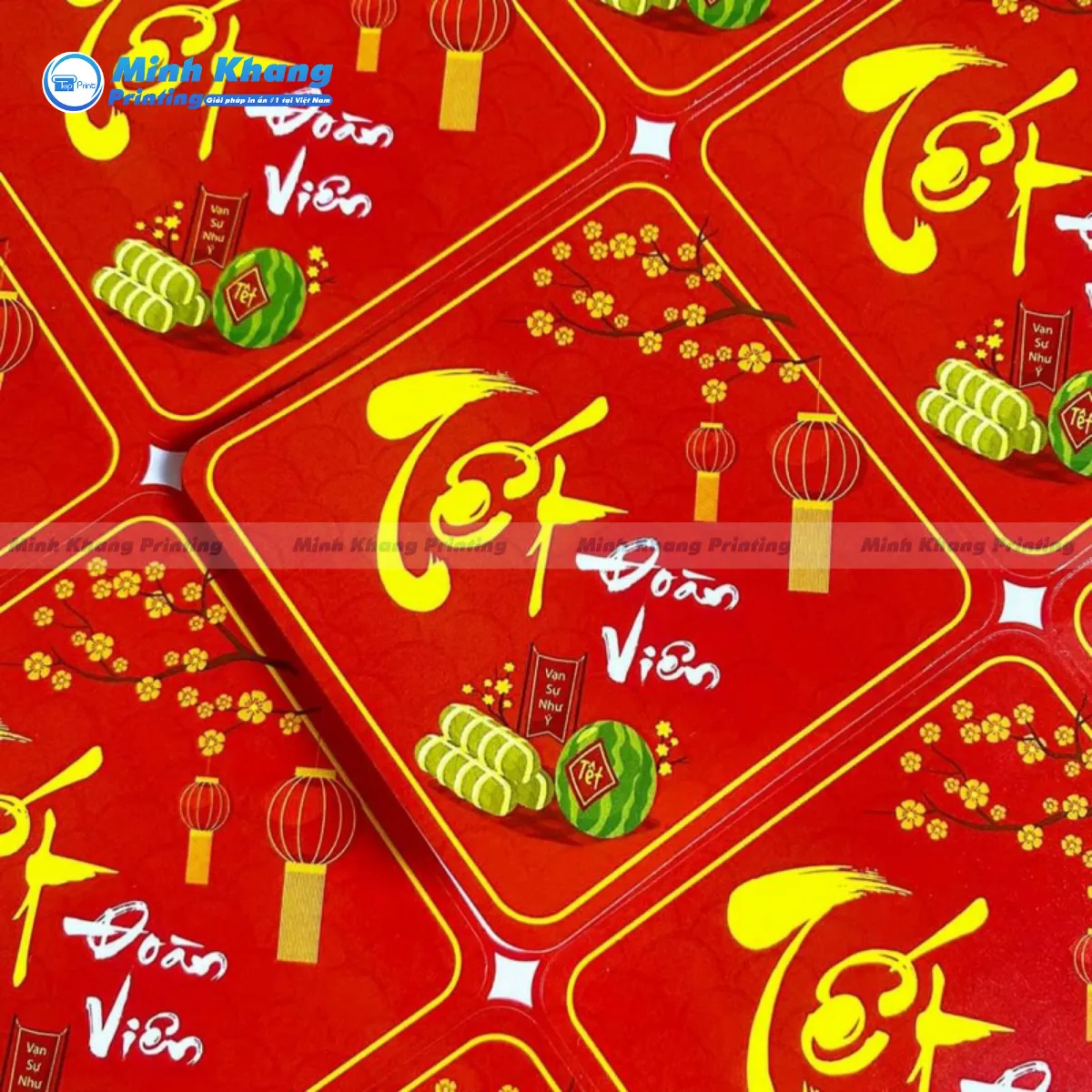 Vào dịp Tết, tem nhãn không chỉ để trang trí mà còn là lời chúc, thông điệp đầy ý nghĩa. In Minh Khang đáp ứng mọi nhu cầu in tem: