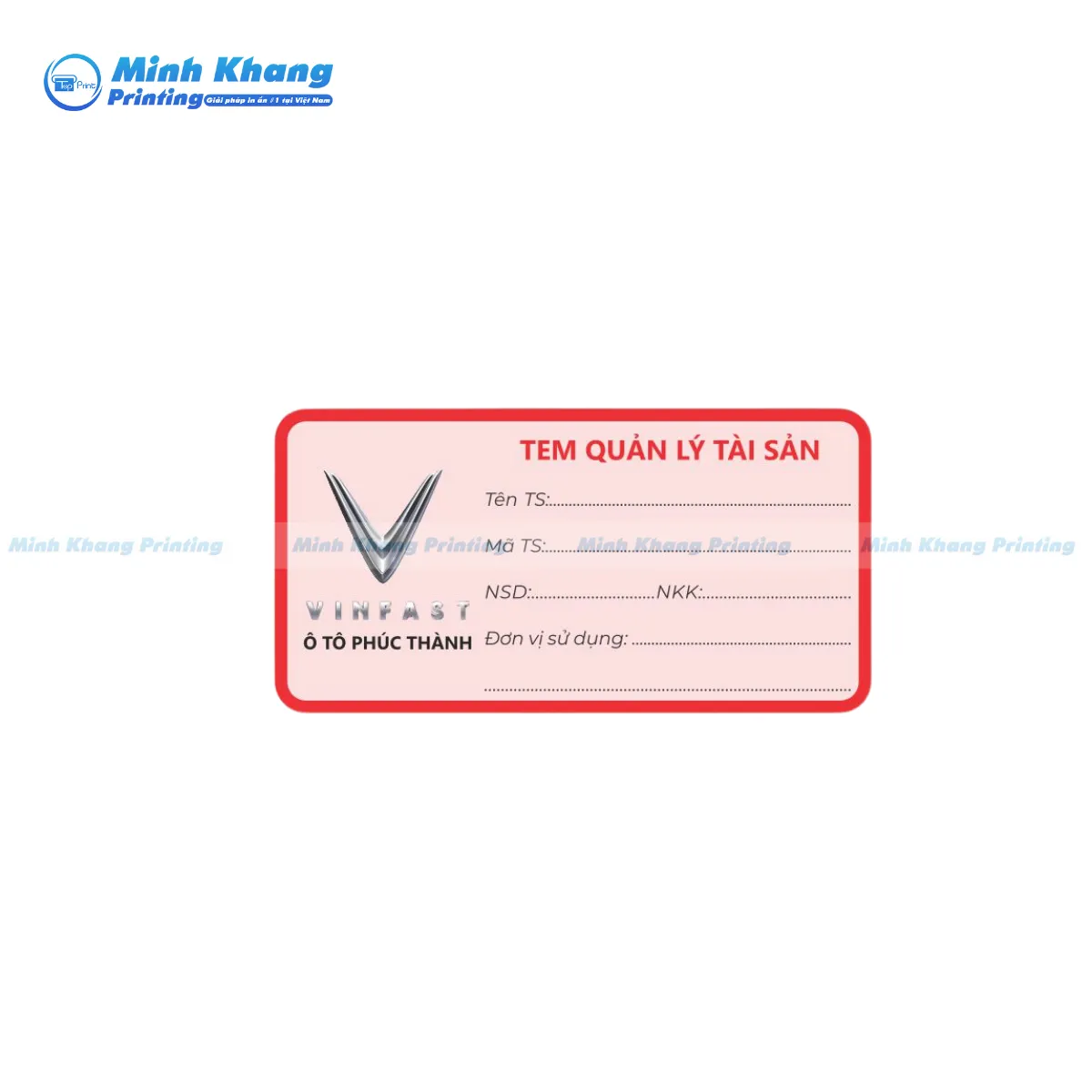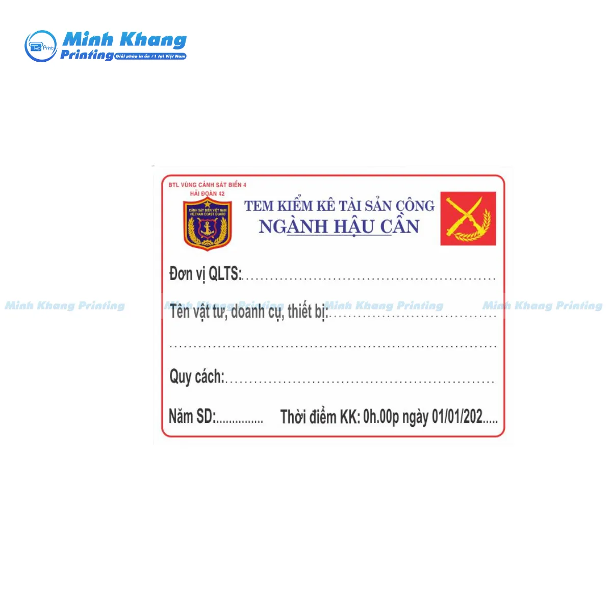 In Minh Khang là đơn vị chuyên cung cấp dịch vụ in tem nhãn chất lượng cao, đặc biệt nổi bật với giải pháp in tem kiểm kê tài sản theo yêu cầu cho doanh nghiệp, cơ quan và tổ chức. Với hệ thống máy móc hiện đại cùng đội ngũ thiết kế chuyên nghiệp, Minh Khang cam kết hỗ trợ thiết kế cá nhân hóa theo yêu cầu, giao hàng đúng tiến độ và tối ưu chi phí in ấn cho khách hàng trên toàn quốc.