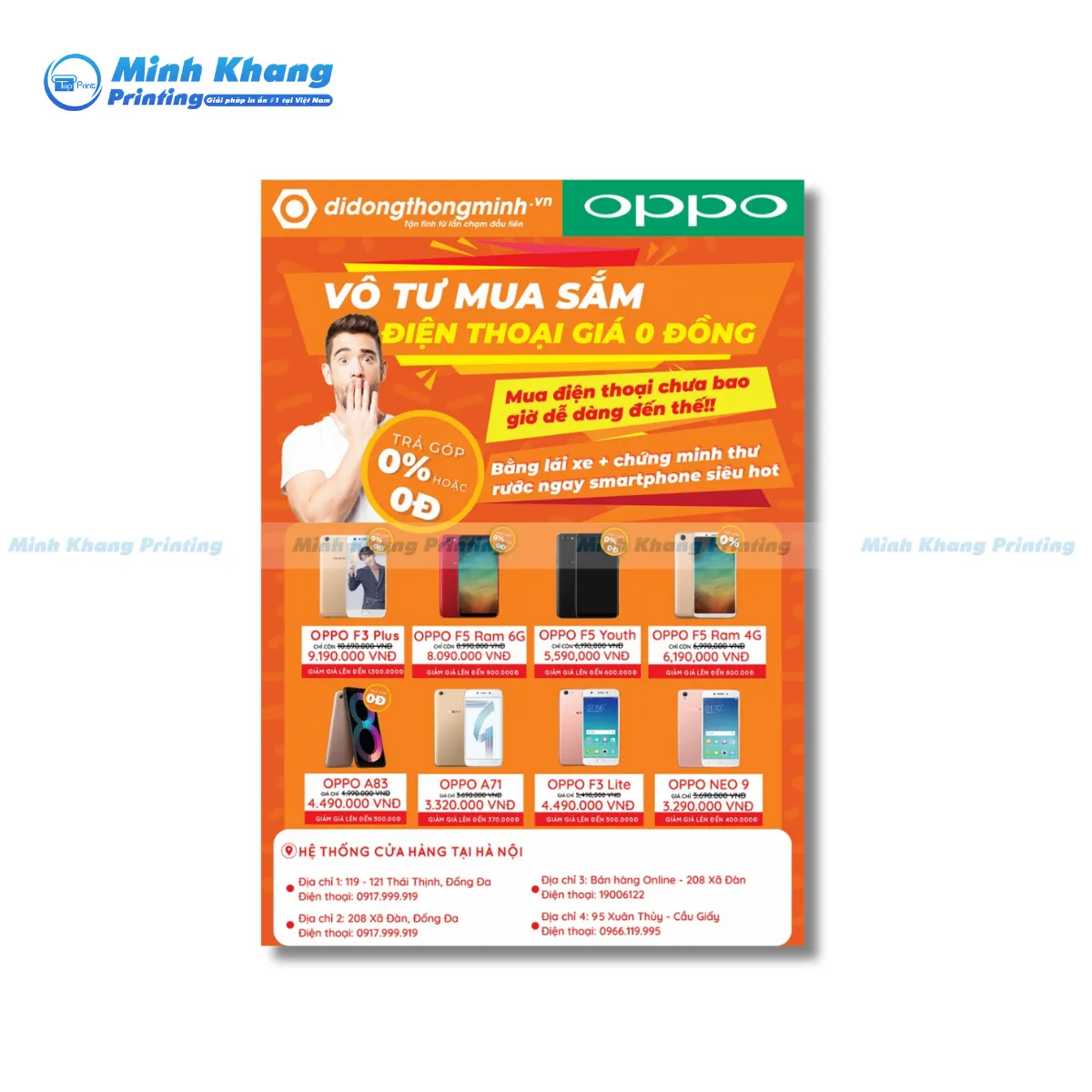 Mẫu quảng cáo khai trương shop điện thoại Oppo Smartphone Khả Hân kích thước A4