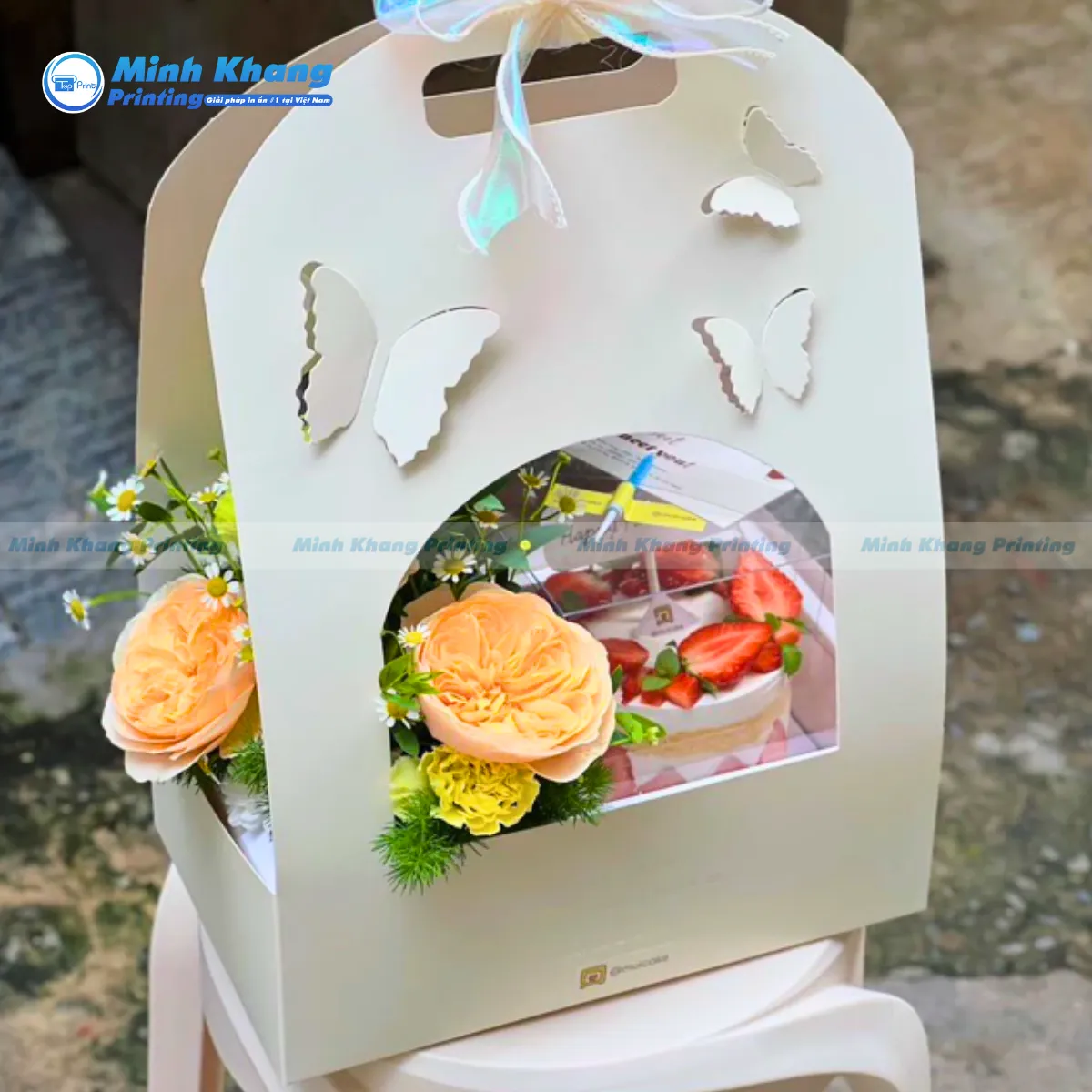 Mẫu túi giấy đựng hoa có quai xách hiệu ứng bướm 3d
