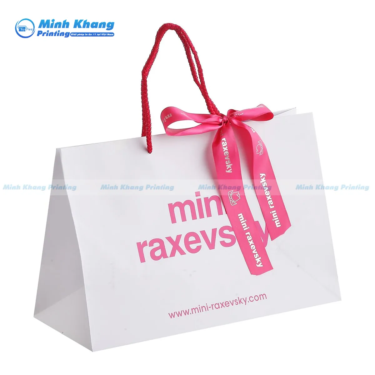 Minh Khang cung cấp đa dạng các mẫu túi giấy có nơ, phù hợp với nhiều nhu cầu khác nhau: