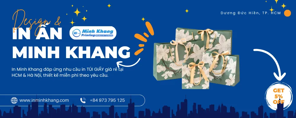 In Minh Khang là một trong những đơn vị chuyên cung cấp dịch vụ in túi giấy theo yêu cầu tại TP.HCM. Với nhiều năm kinh nghiệm trong lĩnh vực in ấn, Minh Khang đã trở thành đối tác tin cậy của nhiều doanh nghiệp, cửa hàng và cá nhân có nhu cầu in túi giấy chất lượng cao.
