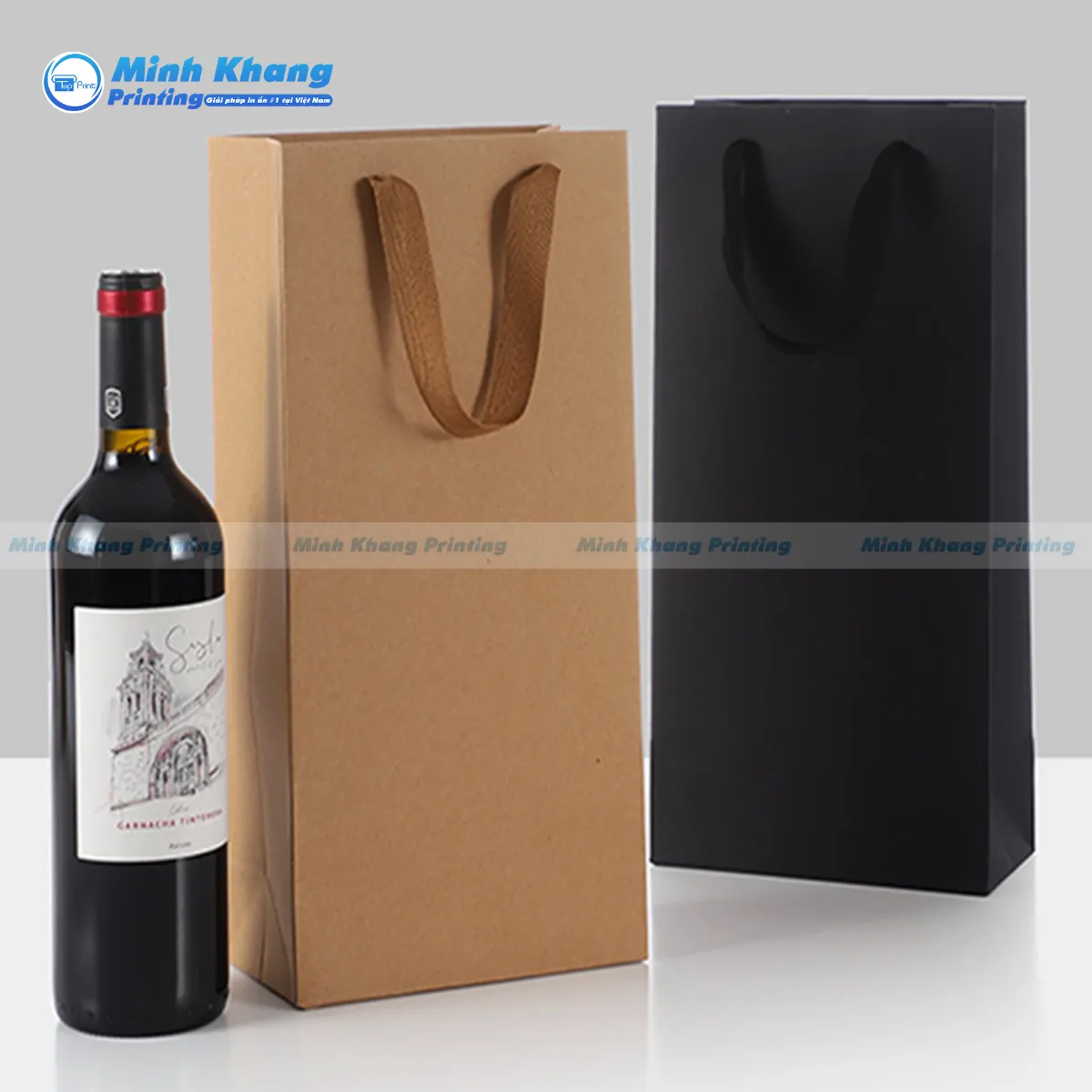 Mẫu túi giấy đựng rượu chắc chắn, với quai bằng vải
