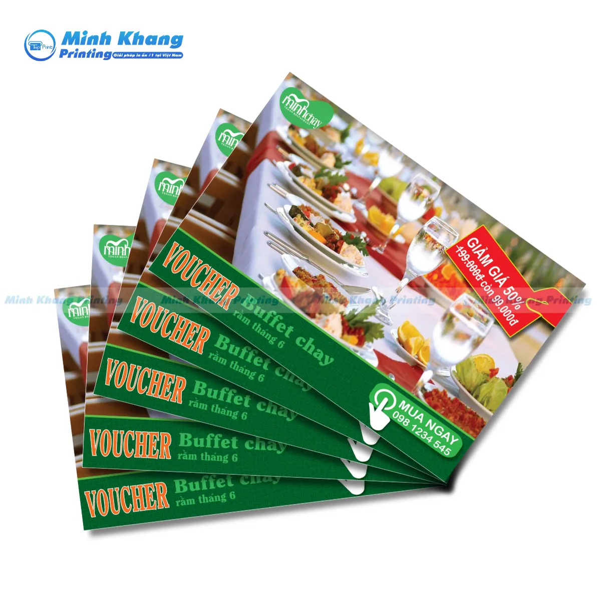 In Minh Khang tự hào là đối tác in ấn chiến lược, chuyên cung cấp dịch vụ in voucher chuyên nghiệp với chất lượng vượt trội cho mọi lĩnh vực—từ F&B, Mỹ phẩm, Spa đến các chuỗi bán lẻ. Chúng tôi không chỉ cung cấp sản phẩm, mà còn mang đến giải pháp tối ưu hóa hiệu quả các chiến dịch khuyến mãi và nâng cao nhận diện thương hiệu của bạn.