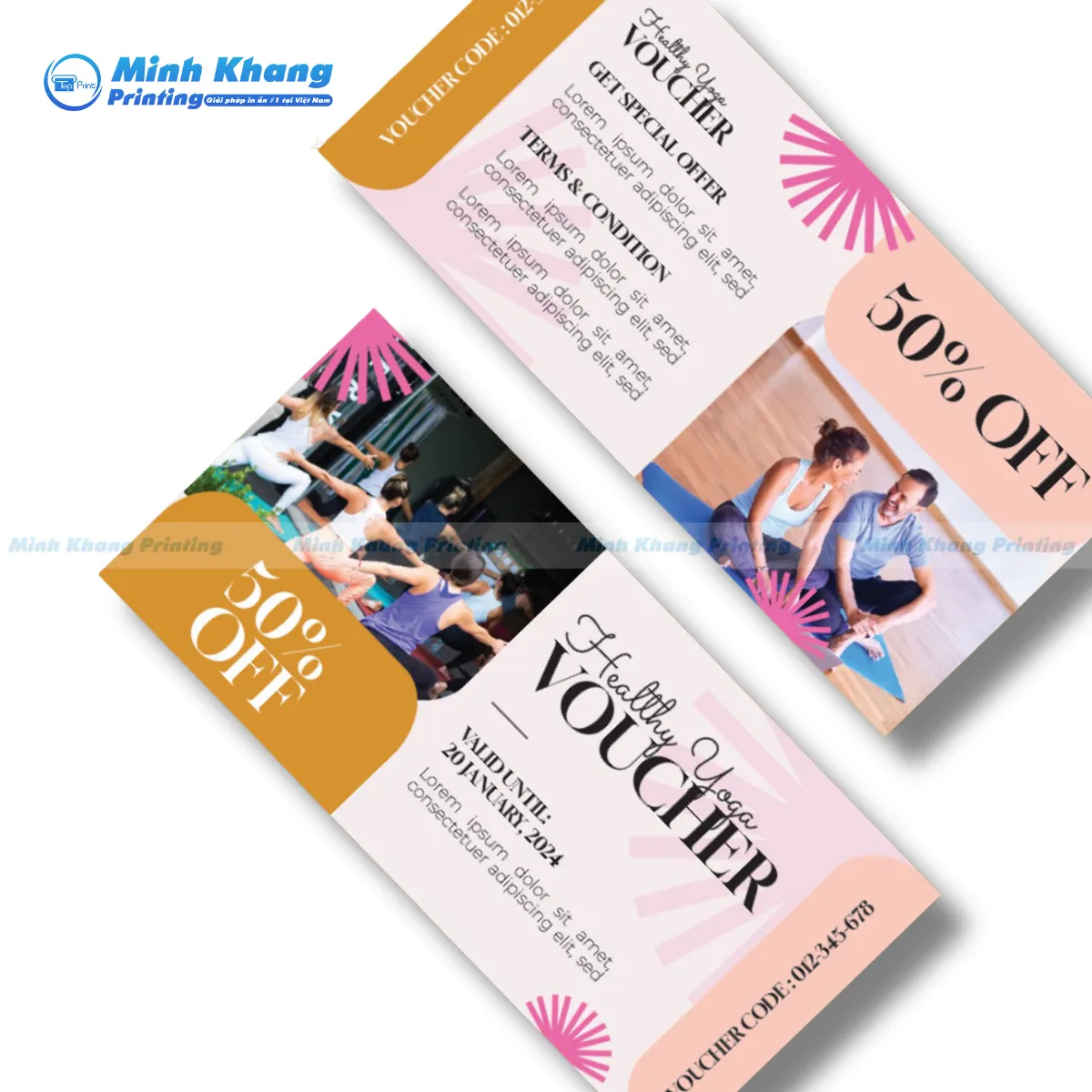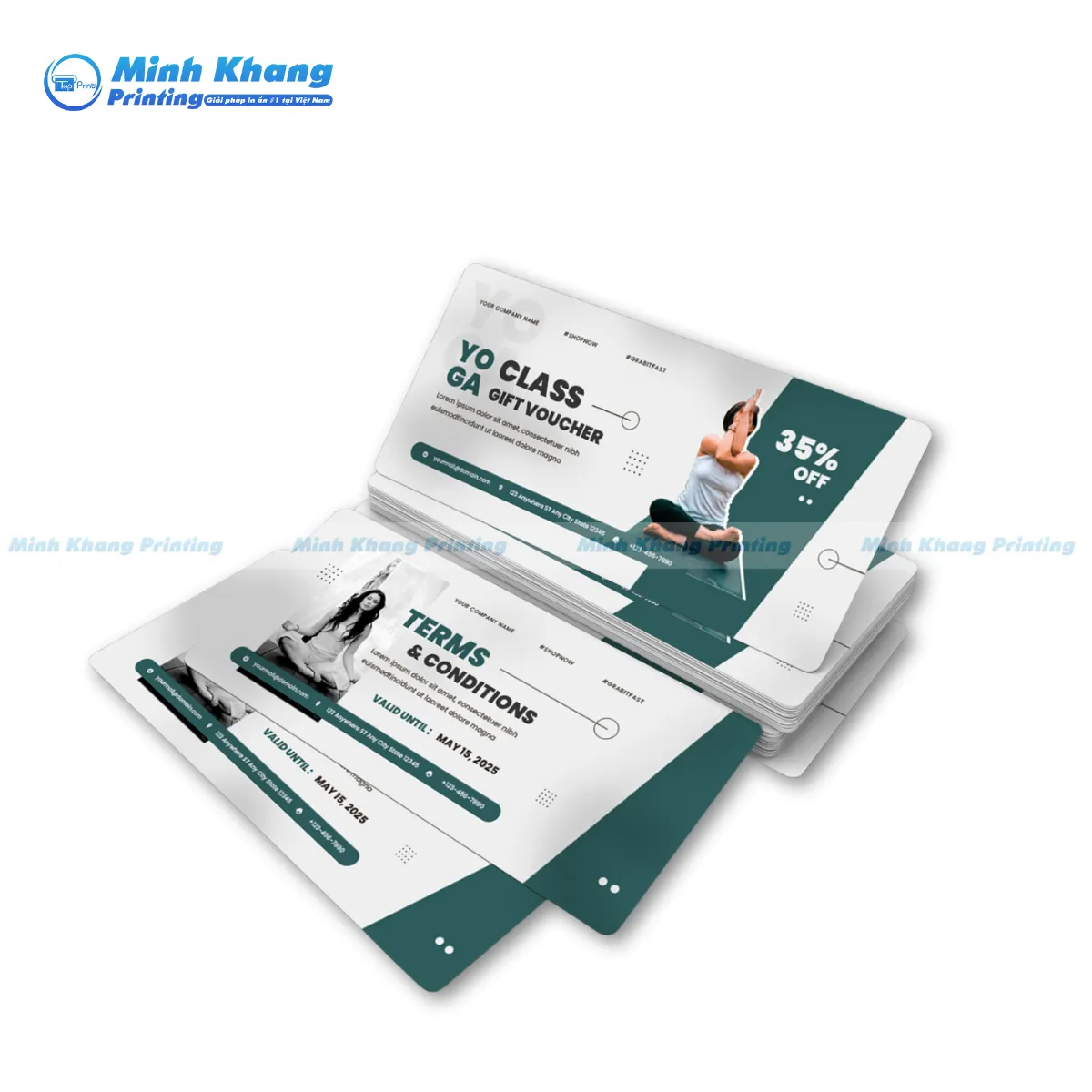 Voucher học yoga không chỉ giúp bạn gia tăng học viên mới, mà còn thể hiện tầm vóc và sự chuyên nghiệp của studio. Một thiết kế tinh tế kết hợp cùng quy cách in chuẩn sẽ khiến khách hàng cảm nhận được giá trị ngay từ ánh nhìn đầu tiên. Đừng để những tấm voucher kém chất lượng làm giảm uy tín thương hiệu của bạn. Hãy liên hệ ngay In Minh Khang để được tư vấn, thiết kế và nhận báo giá in voucher yoga tốt nhất hôm nay!