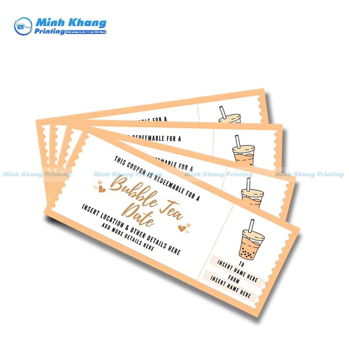 Một tấm voucher trà sữa đẹp, rõ ràng và đúng mục đích sẽ giúp quán bạn thu hút khách mới và giữ chân khách cũ hiệu quả hơn. Dưới đây là những quy cách cơ bản mà In Minh Khang gợi ý để bạn chọn dễ dàng hơn.